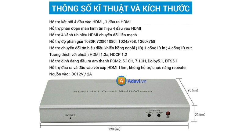 - Hỗ trợ 4 kênh HDMI tín hiệu màn hình phân khúc.