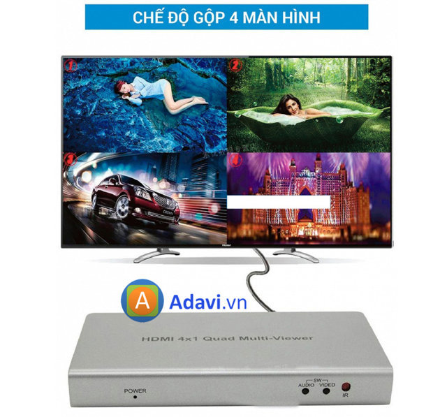 - Bộ gộp HDMI 4 vào 1 ra chính hãng MultiViewer HDMI 1.4 là một phân đoạn màn hình có độ phân giải cao 4 chiều hiệu năng cao và chuyển đổi liên tục bằng công tắc, có thể là 4 tín hiệu video kỹ thuật số độ nét cao được hiển thị trên cùng một màn hình và một loạt các video và thực hiện trình chiếu một cách liên tục.