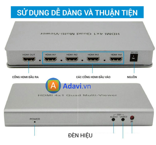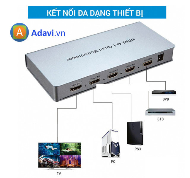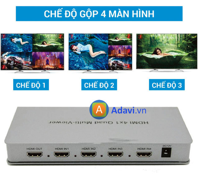 Bộ gộp HDMI vào 4 ra 1 cung cấp giải pháp xuất tín hiệu từ 4 nguồn xuất là máy tính, laptop ra 1 nguồn phát/hiển thị đồng thời (màn hình, tivi, máy chiếu) chất lượng âm thanh và hình ảnh vẫn được giữ nguyên và đồng đều. Adavi cung cấp bộ gộp HDMI 4 in 1 out hàng chất lượng chính hãng, giao hàng miễn phí tận nơi tại TpHCM.