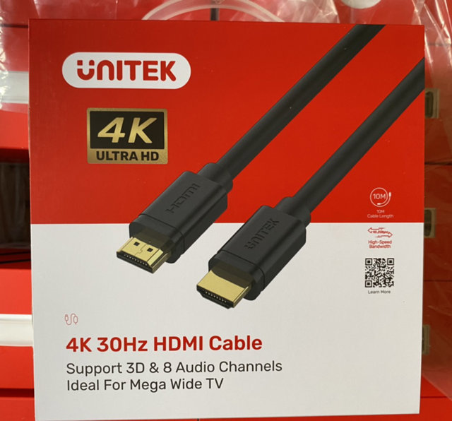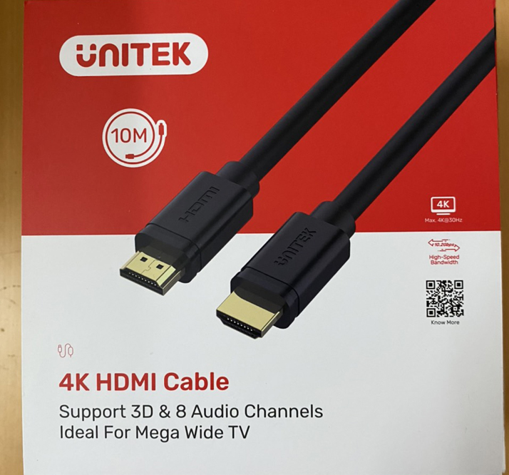 Cáp HDMI Unitek 10m sử dụng để kết nối từ Laptop, TV box, Modern, Game Console ra máy chiếu, màn hình, LED tivi.