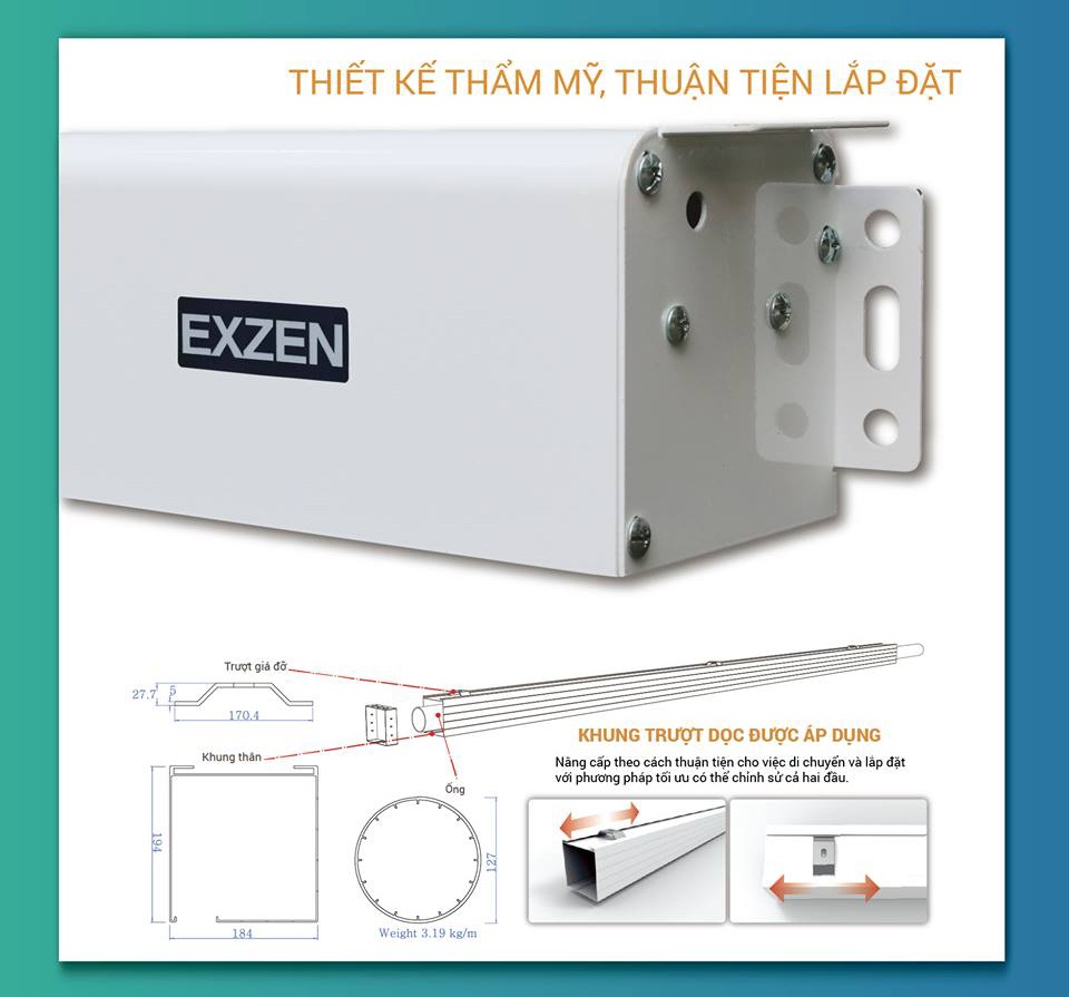 Thông số kỹ thuật màn chiếu điện tử Exzen 200 inch tỷ lệ 4 3 hộp màn SẮT