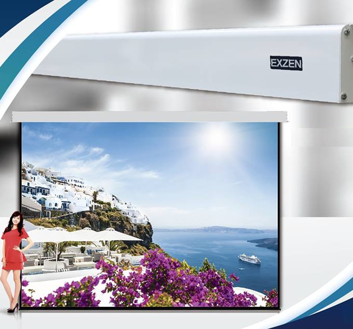 Màn Chiếu Điện Tử Exzen 200 inch tỷ lệ 4 3 hộp màn SẮT