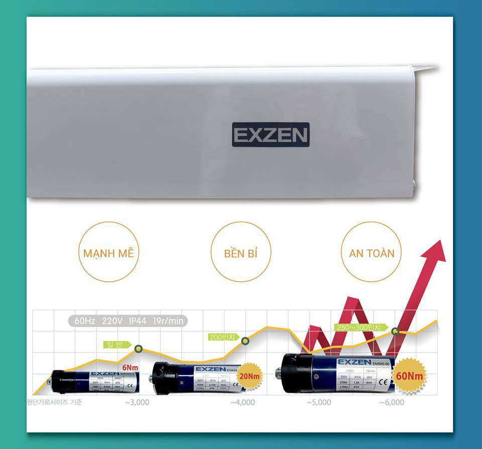 - Màn chiếu điện Exzen 200 inch: thương hiệu Hàn Quốc, sản xuất tại Long An, Việt Nam.