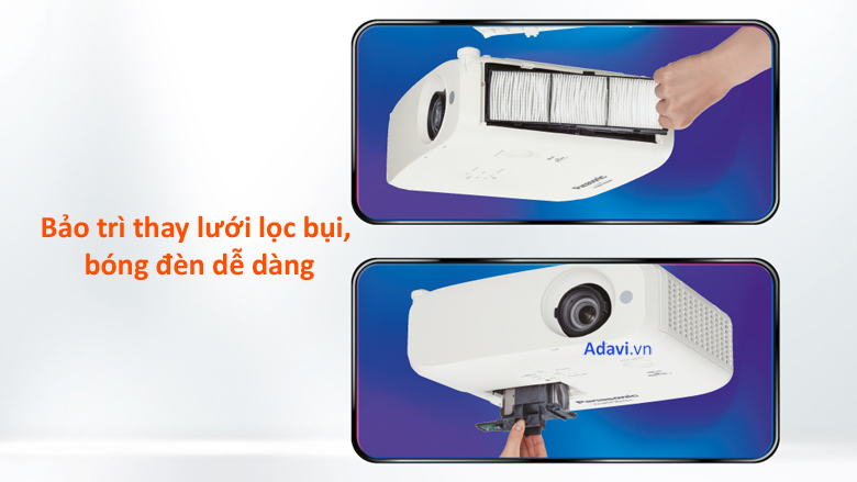 - Linh phụ kiện khác: bóng đèn máy chiếu Panasonic PT-VX615N ET-LAV400, lọc gió ET-RFV410, giá treo máy chiếu, cáp HDMI, cáp VGA.