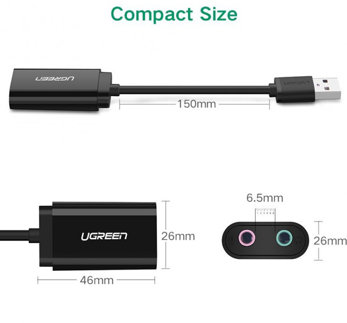 Thông số kỹ thuật UGREEN 30724 USB Sound Card 3.5mm Headphone vs Microphone Jack black